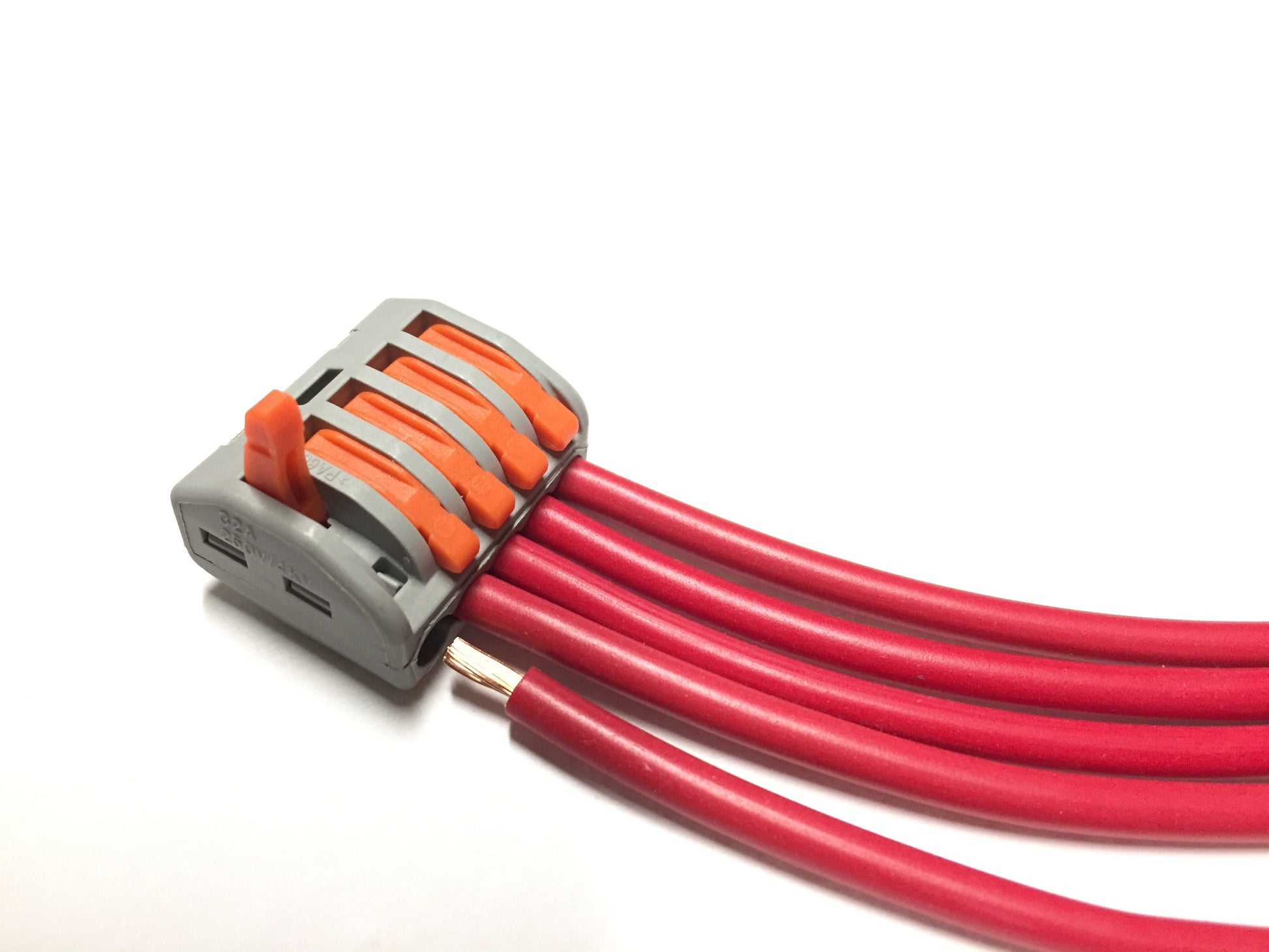 Usage: flip lever up, insert stripped wires, flip lever down, check wire does not pull out.